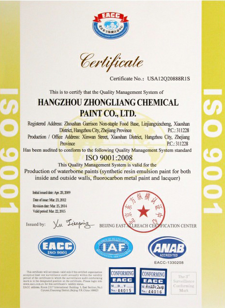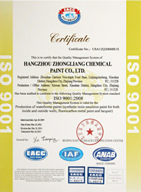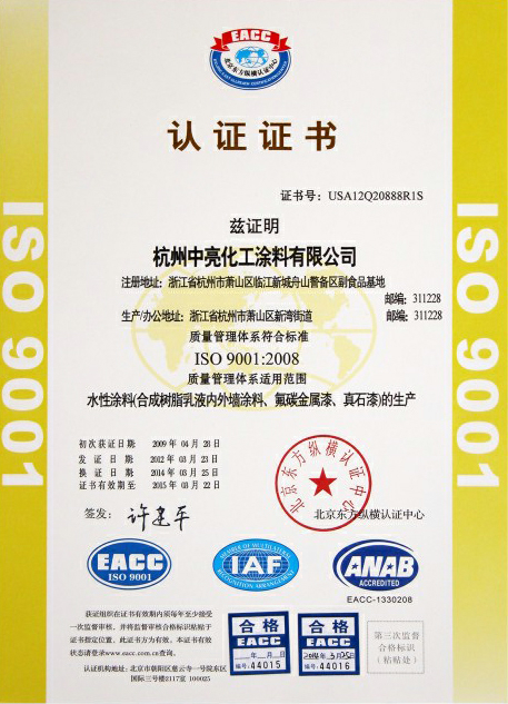 公司始終貫徹"質(zhì)量為重、用心服務(wù)、開拓創(chuàng)新、顧客滿意"的質(zhì)量方針。在"保質(zhì)量、重信譽(yù)、講效益、求發(fā)展"經(jīng)營完旨的指引下,杭州中亮化工涂料有限公司誠邀您共同發(fā)展,攜手共進(jìn),以豐碩成果和深厚情誼迎接美好的明天!