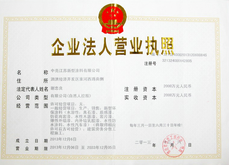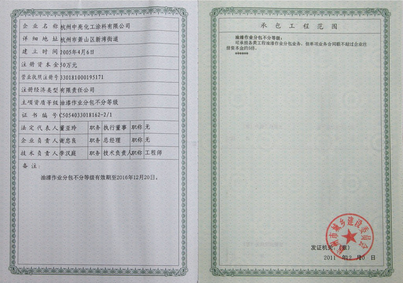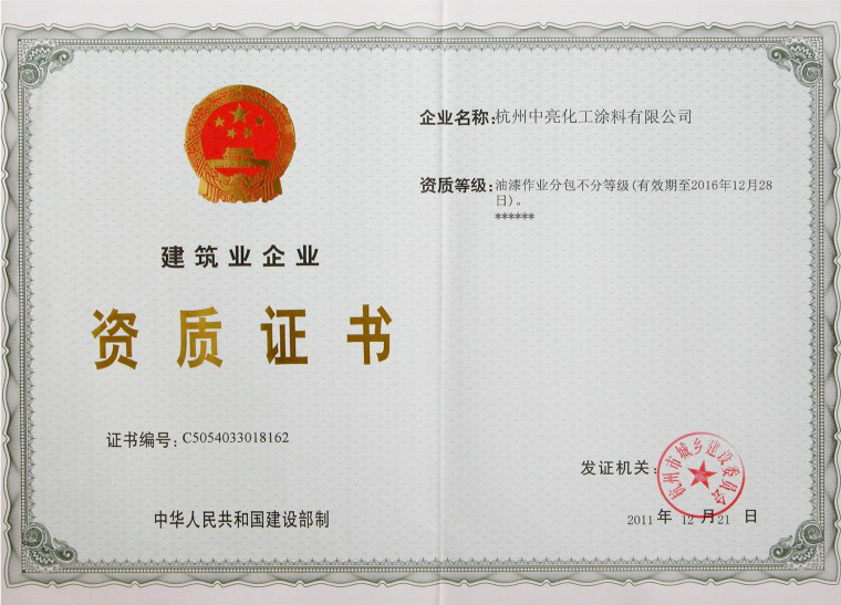 資質(zhì)名稱:天然真石漆