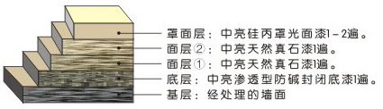 ★ 采用純天然彩色石英石,涂膜堅硬。 ★ 運用多種彩色砂石、可任意調配不同花樣和外觀的仿大理石效果。 ★ 采用高防水硅丙樹脂粘結劑,能耐老化二十年以上。 使用范圍:適用與各種建筑墻面,尤其適用于結構復雜之墻面及需要體重莊重、豪華、大方、個性化仿石效果的外墻面。 產(chǎn)品特征:水性、厚漿砂壁狀、多彩(搭配)、單組份。 配套組合: